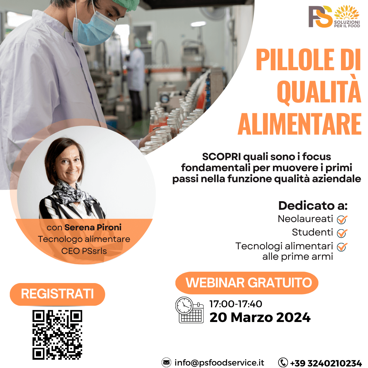Webinar Gratuito 20 Marzo: Pillole di qualità alimentare